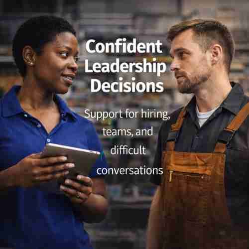 Support for hiring choices, leadership pressure, and difficult team conversations without carrying the weight alone or reacting emotionally.