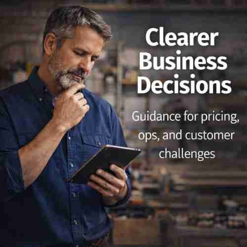 Every decision — pricing, hiring, customer issues, workload — has consequences. Most owners don’t need more information. They need a way to think clearly through decisions without carrying everything alone.